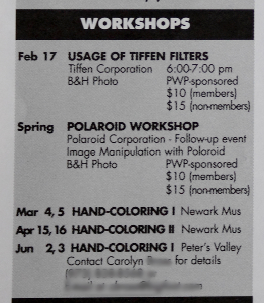 PWP workshops began to include topics like Polaroid manipulation and hand-coloring: