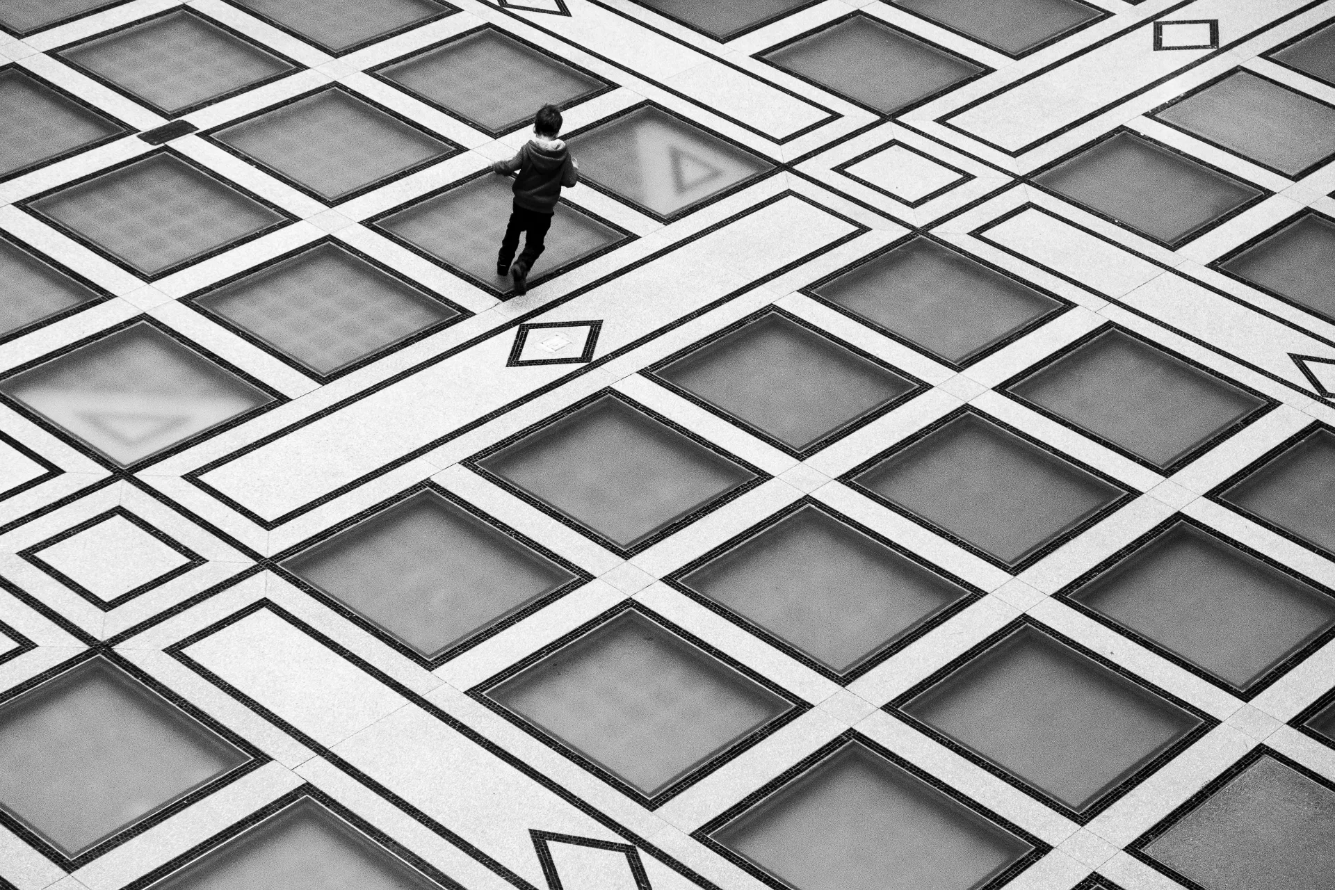 Alexa Van de Walle Playing on the Glass Floor, Beaux-Arts Court, Brooklyn Museum